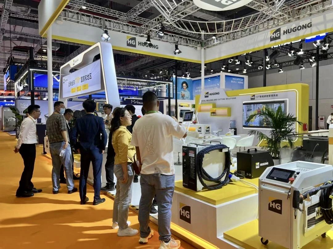 HUGONG免示教机器人工作站,具备寻位纠偏、实时跟踪、先扫后焊三种模式,可自主决策焊接。展会现场展示了激光跟踪定位技术,精确定位焊接轨迹,自动清理焊渣,提升了焊接的精度和美观性,让机器智造更加智能化!高性能、高稳定性、高可靠性的设计理念,满足不同行业需求,为其提供个性化定制的机器人解决方案。